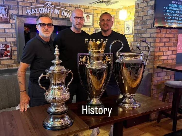 此次重聚时,他已剪短标志性金发并染成深色,还蓄起胡须,戴着墨镜亮相。虽然未参与三冠伟业,但波博斯基带着1996-97赛季英超冠军奖牌离开曼联。